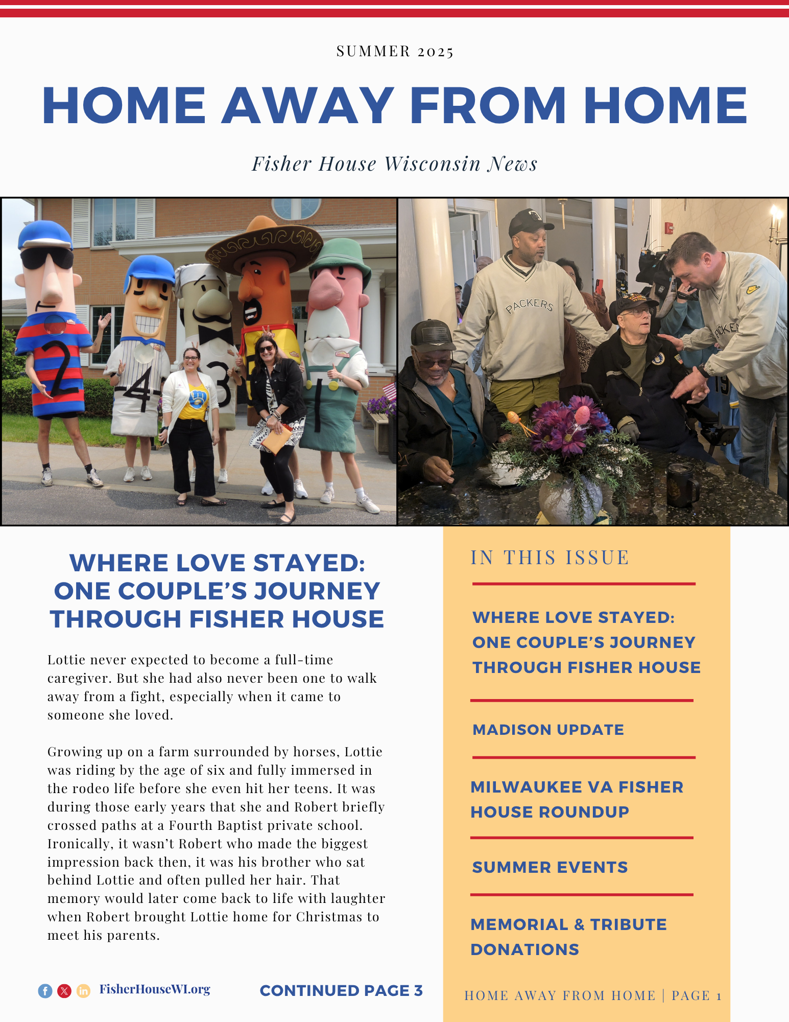 Check out Fisher House Wisconsin's Summer 2023 news! Learn about our Board of Directors, the story of a family's courage in the face of adversity, and more. View the full newsletter here.